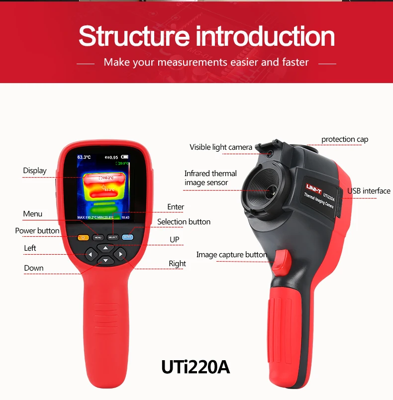 UNI T UTi220A 高清高清紅外熱像儀相機地暖探測器溫度成像儀 300000 像素