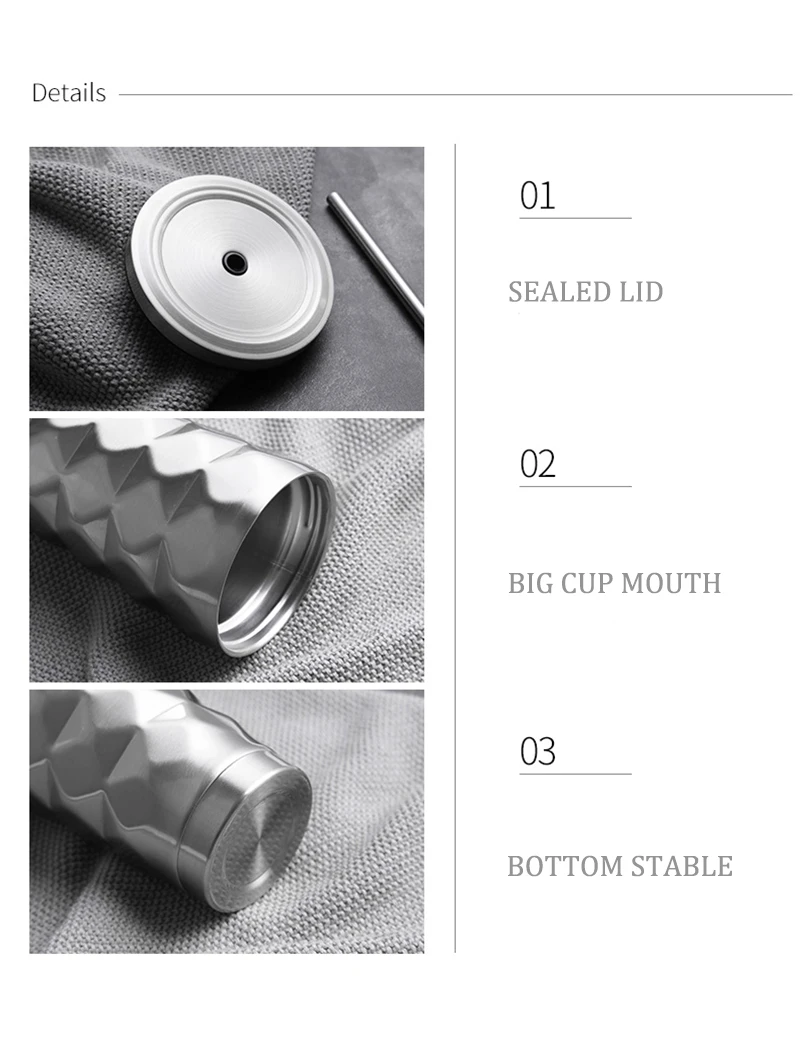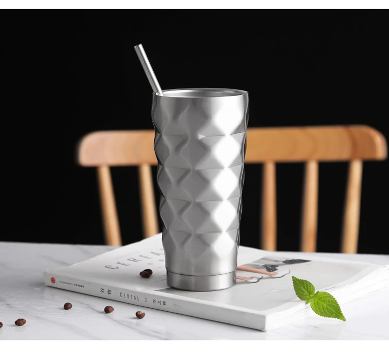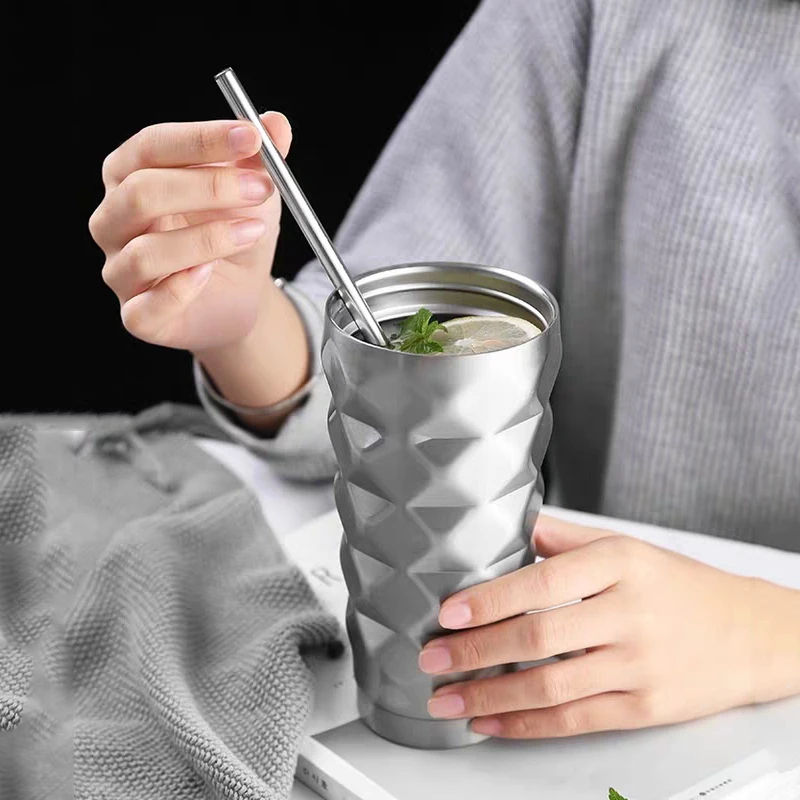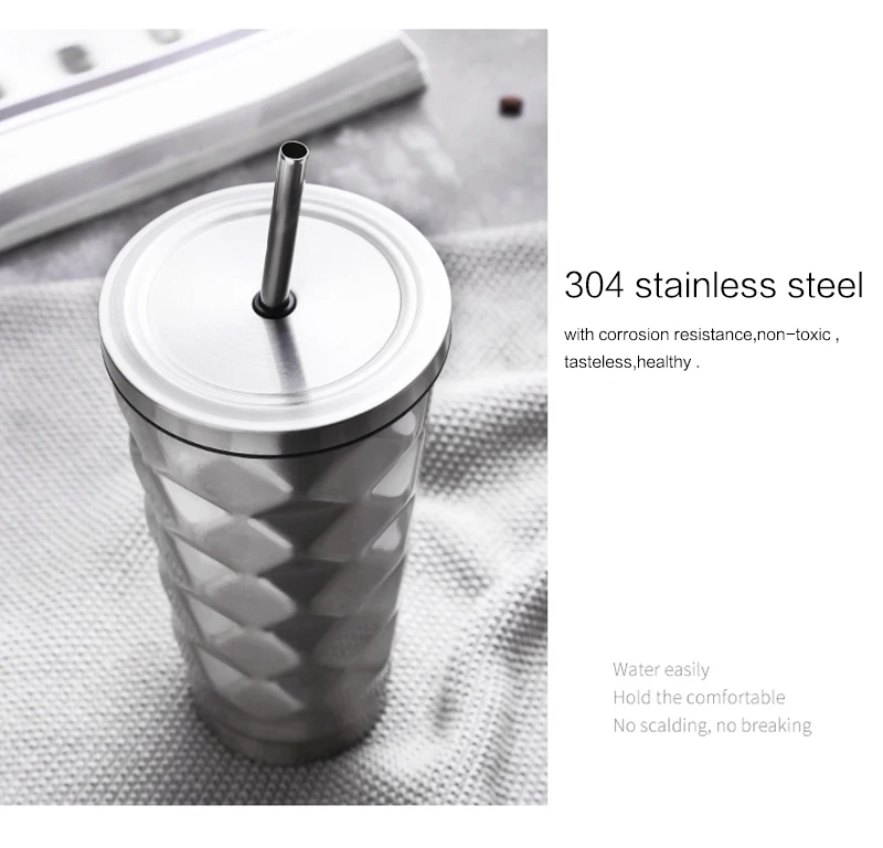 500ML 不銹鋼鑽石吸管水杯真空隔熱雙層保溫瓶旅行馬克杯咖啡杯水瓶
