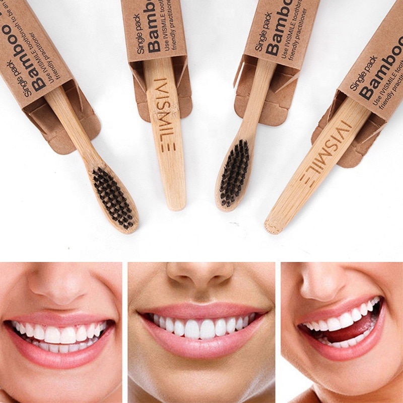 竹炭牙刷 4 件裝竹纖維軟牙刷口腔護理環保刮舌器軟毛牙刷