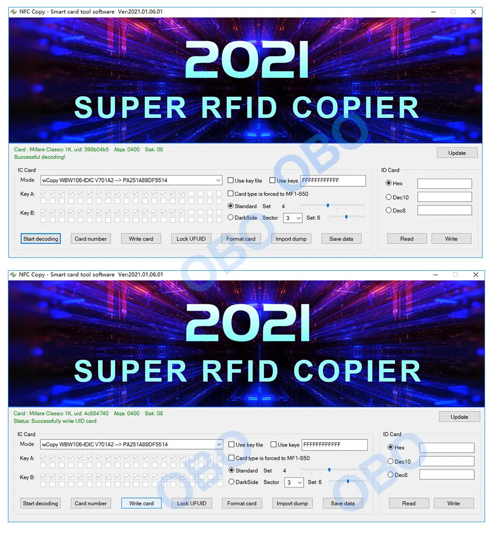 7) Support UID FUID CUID UFUID IC semi-encrypted card, IC full encryption card.